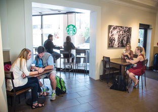 Conveniently located on the main floor of the Jackson Library, Starbucks features delicious, handcrafted beverages and great tasting food. This includes amazing coffees from around the world, and other drinks for you to discover and enjoy. Pastries and sandwiches are also available and made with high-quality, simple ingredients. Enjoy your drink and meal while you work or socialize in our comfortable atmosphere.